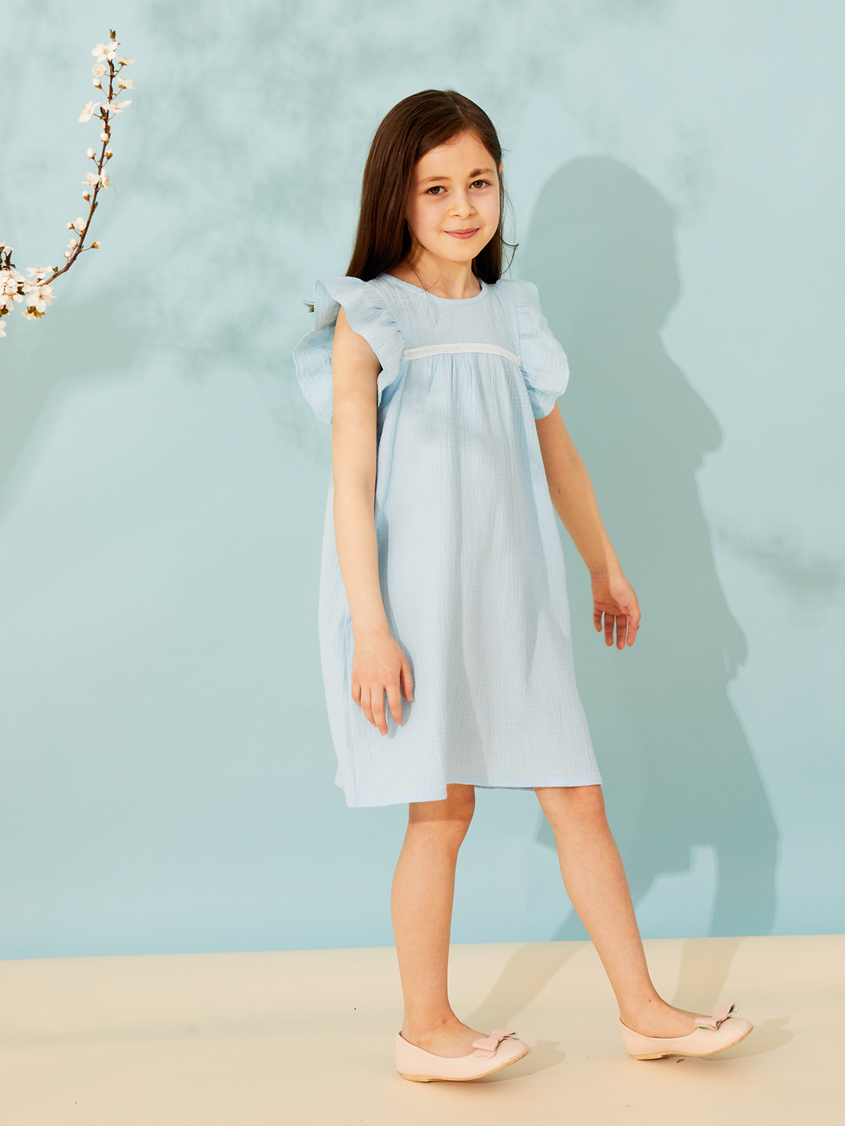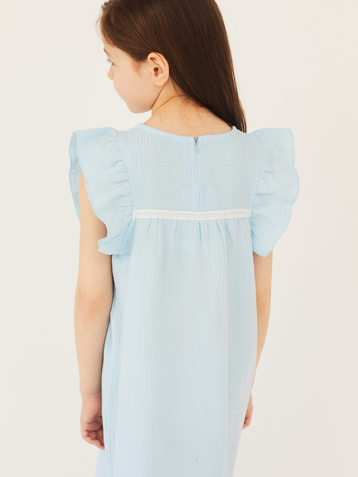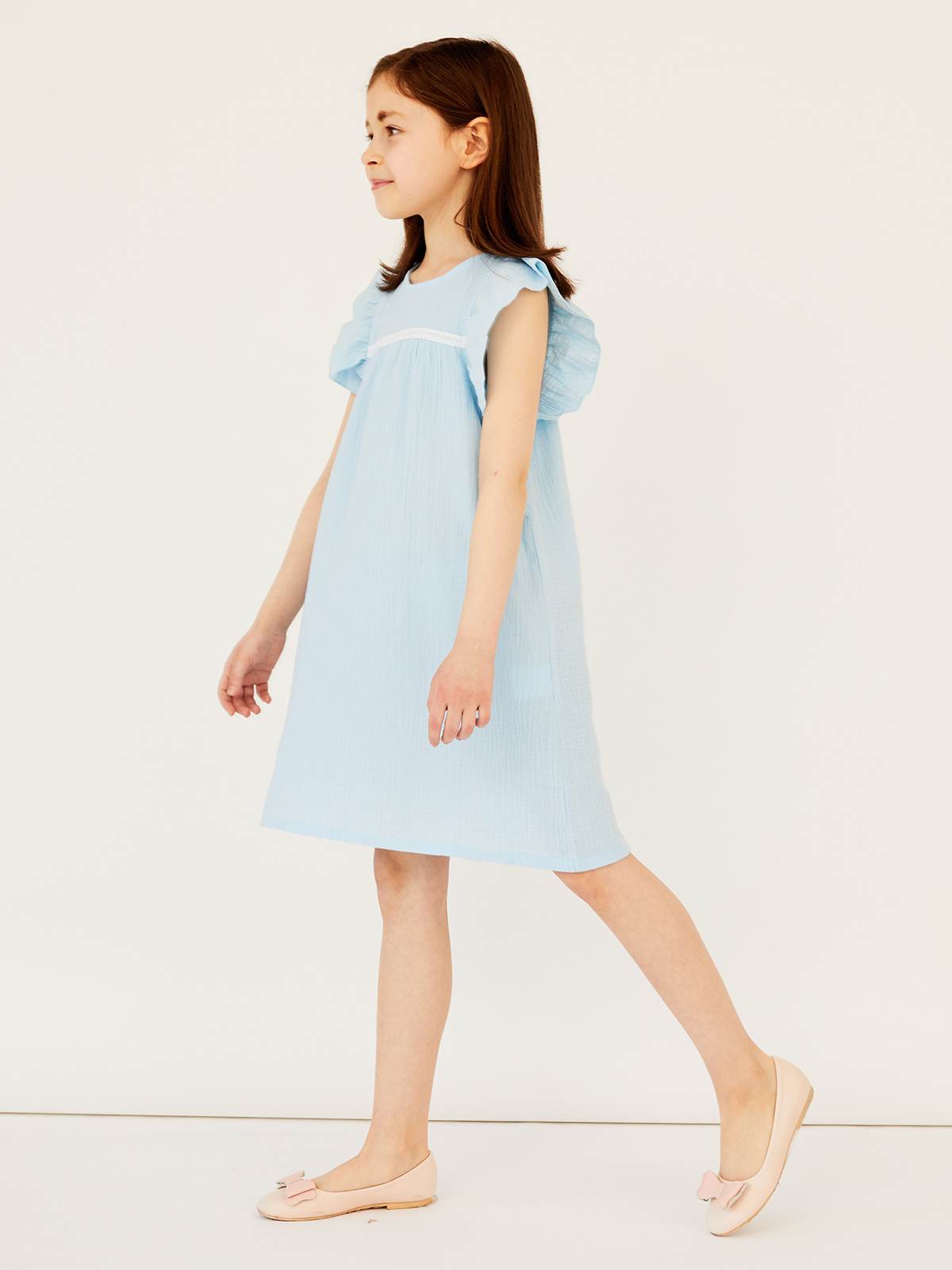 Платье выполнено из легкой ткани - марлевки, идеальной для сезона весна-лето. Благодаря натуральному составу (100% хлопок) ткань практически невесомая и мягкая, а особенности плетения полотна способствует ее прочности и долговечности. Основными ее преимуществами являются высокая гигроскопичность, прекрасный воздухообмен, гипоаллергенность. Стирать с соблюдением температурного режима. Может давать усадку, поэтому рекомендуем брать на размер больше. Имеется застежка-молния на спинке изделия.