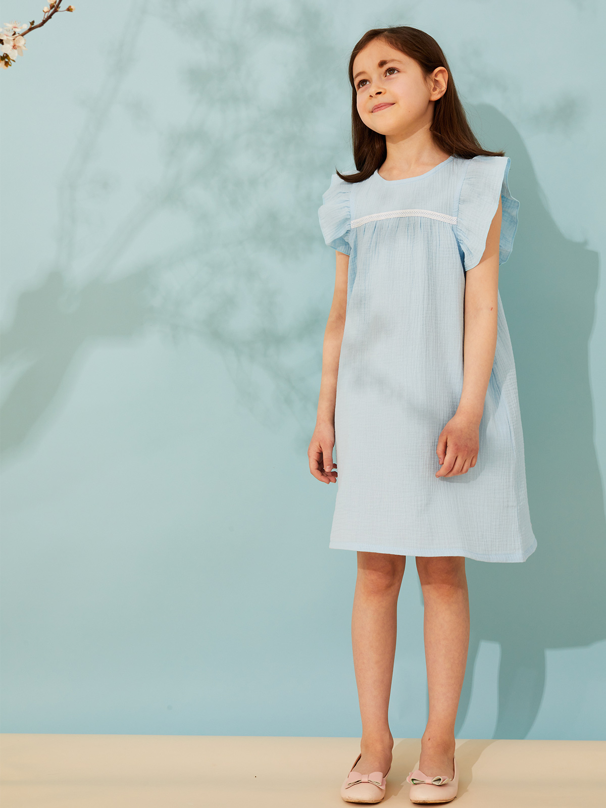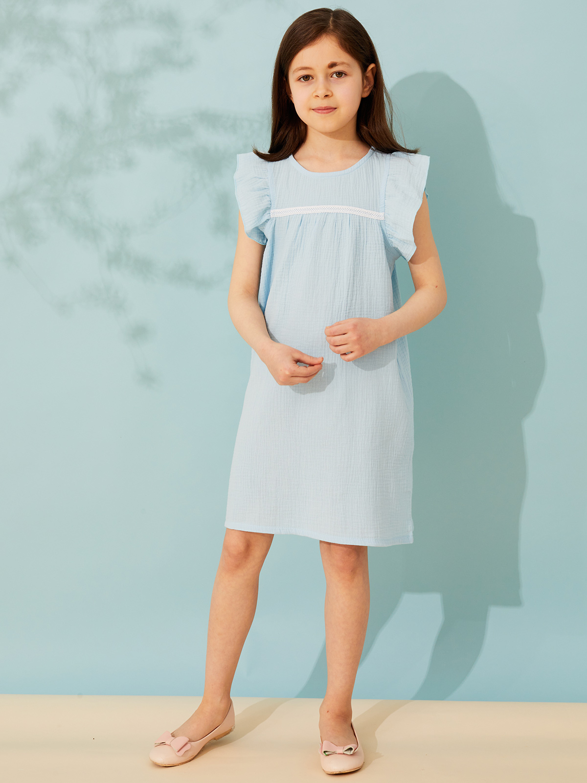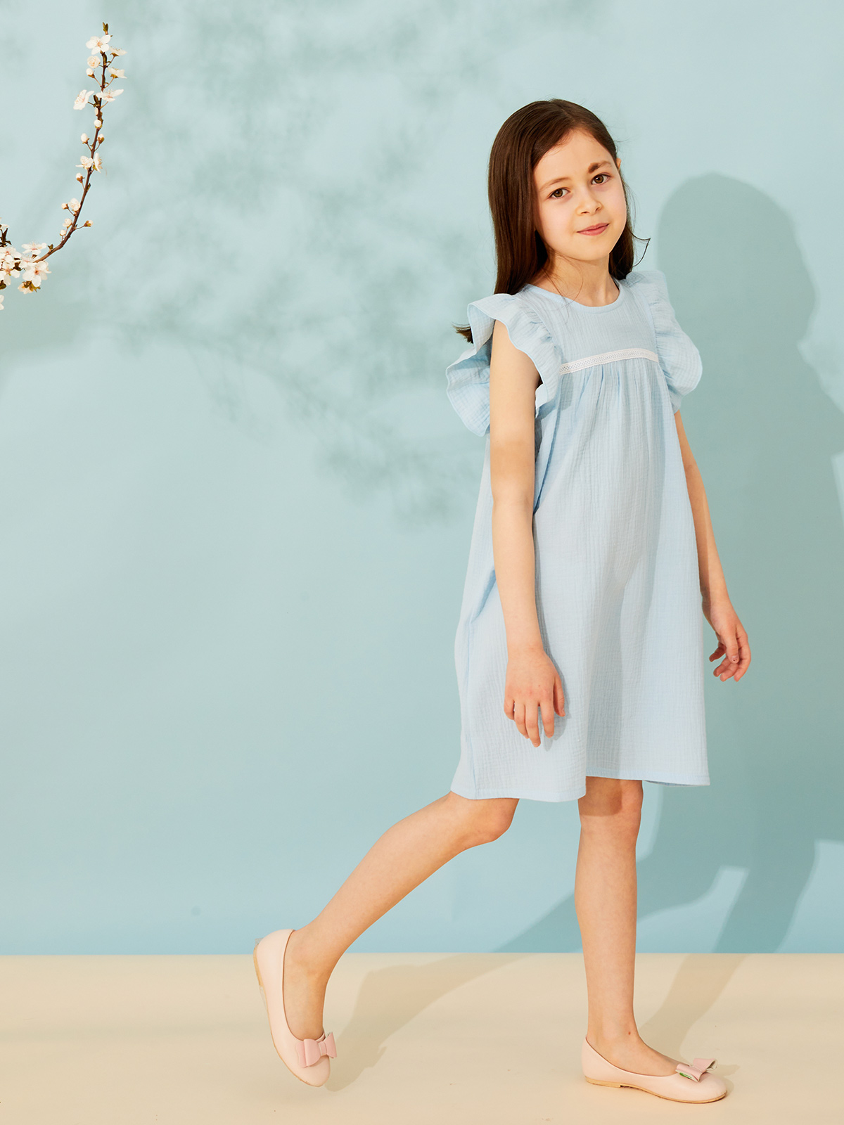 Платье выполнено из легкой ткани - марлевки, идеальной для сезона весна-лето. Благодаря натуральному составу (100% хлопок) ткань практически невесомая и мягкая, а особенности плетения полотна способствует ее прочности и долговечности. Основными ее преимуществами являются высокая гигроскопичность, прекрасный воздухообмен, гипоаллергенность. Стирать с соблюдением температурного режима. Может давать усадку, поэтому рекомендуем брать на размер больше. Имеется застежка-молния на спинке изделия.