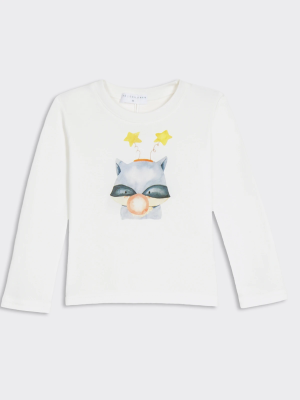 Лонгслив выполнен из качественного турецкого трикотажа. Яркий принт порадует ребенка. Рисунок нанесен с помощью диджитал печати, который не стирается во время стирки и при частой носке. Горловина лонгслива не тугая, что позволит ребенку самостоятельно надевать и снимать его, не сковывая движения. Основной цвет лонгслива нежно-молочный, рисунок красочный и нежный.