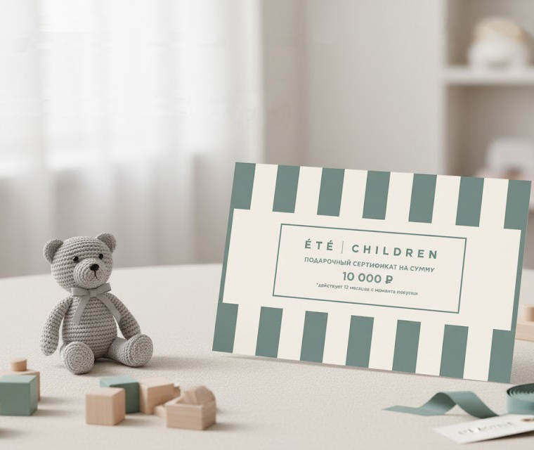 Подарочные сертификаты ETE CHILDREN — это идеальный способ порадовать своих близких и друзей! Он позволяет выбрать именно то, что они хотят, будь то стильная одежда или аксессуары для их маленьких модников. С нашим сертификатом вы дарите не просто подарок, а возможность создать уникальный образ, который подчеркнет индивидуальность каждого ребенка.